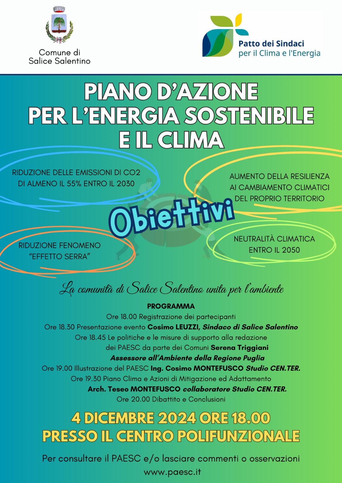 La partecipazione democratica è fondamentale per perseguire gli obiettivi collettivi previsti nel Piano d’Azione per l’Energia Sostenibile e il Clima (PAESC).